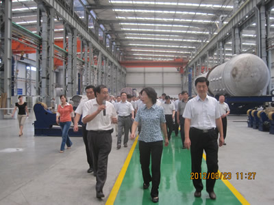 8月23日上午,三門峽市市長趙海燕帶領黨政代表團在開封市常務副市長黃道功、開封新區(qū)黨工委書記焦躍進的陪同下考察了開封空分新廠區(qū)項目建設情況及生產運行情況。圖為公司副總經理薛金河正在向代表團介紹新廠區(qū)建設情況。