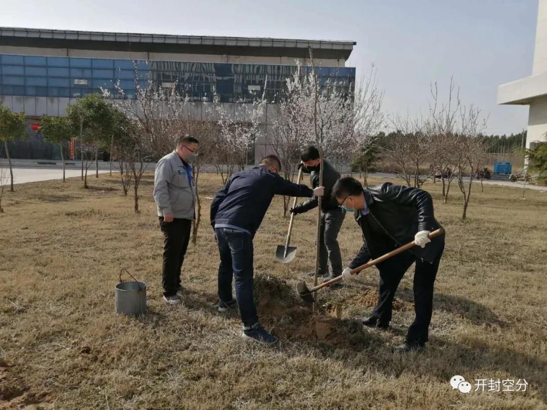 今年的植樹節(jié)和以往有些不同,目前依然是疫情防控的關(guān)鍵期,開封空分統(tǒng)籌兼顧,在確保人員安全的同時(shí),搶抓春季植樹的黃金時(shí)節(jié)。3月12日,陽光明媚,復(fù)工的職工們?nèi)颗宕骺谡?,拿起鐵锨,提上水桶,開始了新一年的植樹活動(dòng)。